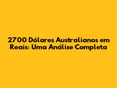 AUD To BRL: 2700 Dólares Australianos Em Reais