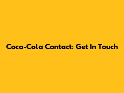 Coca-Cola Contact: Get In Touch