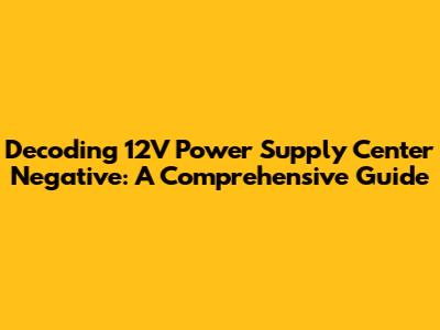 Decoding 12V Power Supply Center Negative: A Comprehensive Guide