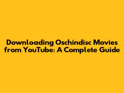 Downloading Oschindisc Movies From YouTube: A Complete Guide