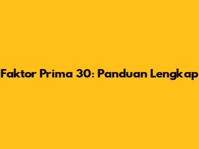 Faktor Prima 30: Panduan Lengkap