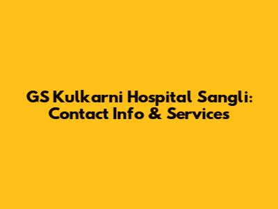 GS Kulkarni Hospital Sangli: Contact Info & Services