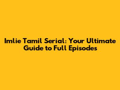 Hey guys! Are you obsessed with Imlie and desperately searching for ways to watch the full episodes of the Tamil serial? You're in the right place! We're going to dive deep into the world of Imlie, covering where you can find all the episodes, what makes the show so captivating, and even some fun trivia to impress your friends. Get ready to binge-watch because, trust me, Imlie is a total rollercoaster! Whether you're a seasoned fan or just starting to get hooked, this guide is your one-stop shop for everything Imlie-related. We will explore where you can find Imlie Tamil serial full episode readily available for streaming and what makes this show a must-watch for everyone! So, grab your snacks, settle in, and let's get started. Imlie is a Hindi-language Indian television drama series that has captured hearts across the nation. Now it's being remade in Tamil, creating a buzz of its own. This guide is made for fans to find out how to watch the show.