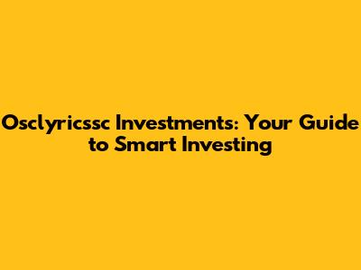 Osclyricssc Investments: Your Guide To Smart Investing