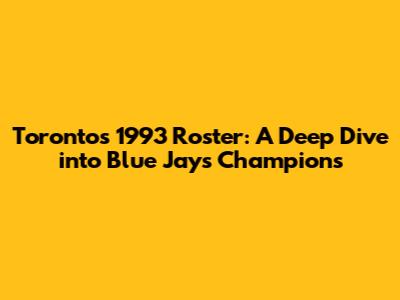 Toronto's 1993 Roster: A Deep Dive Into Blue Jays' Champions